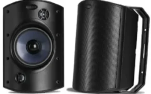 The OSD Audio BTP525 is a perfect choice for mounting speakers outside. These speakers come with 10ft of speaker wire so you can place them on opposite ends of your space and have a full stereo sound, but beware that when mounted outdoors these rob some power from the bass quality because they are rated IP67 to be able to withstand rain or dirt without being damaged.